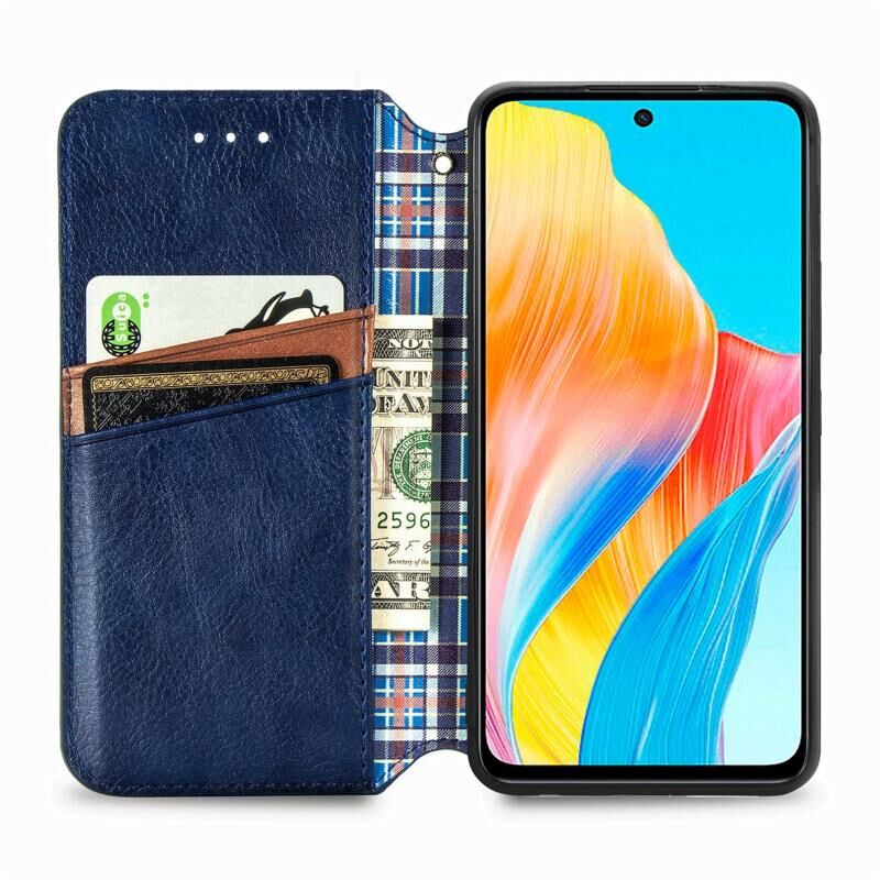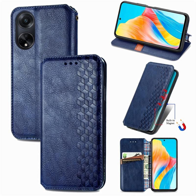 Για OPPO A98 Cubic πλέγμα πιέζεται μαγνητική δερμάτινη θήκη τηλεφώνου (μπλε)