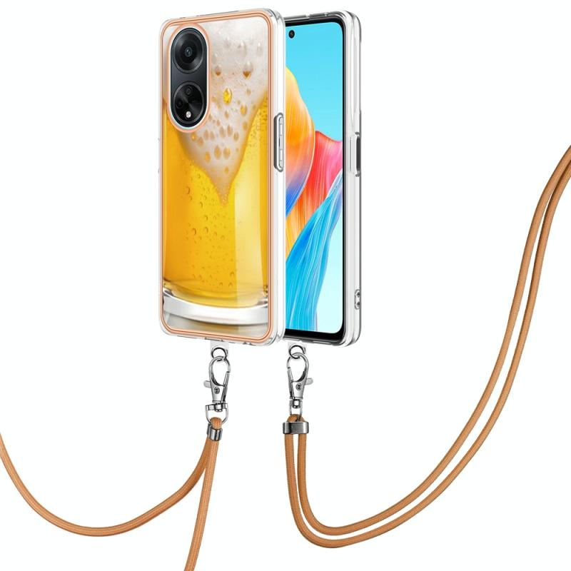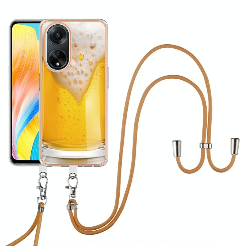 For OPPO A98 Electroplating Dual-side IMD Phone Case with Lanyard(Draft Beer)