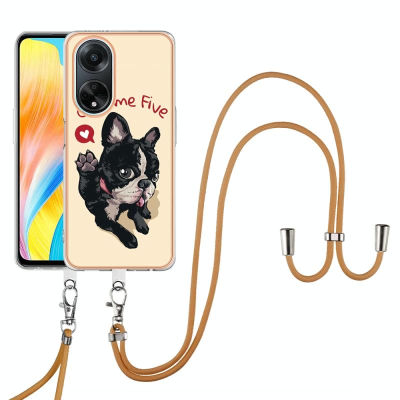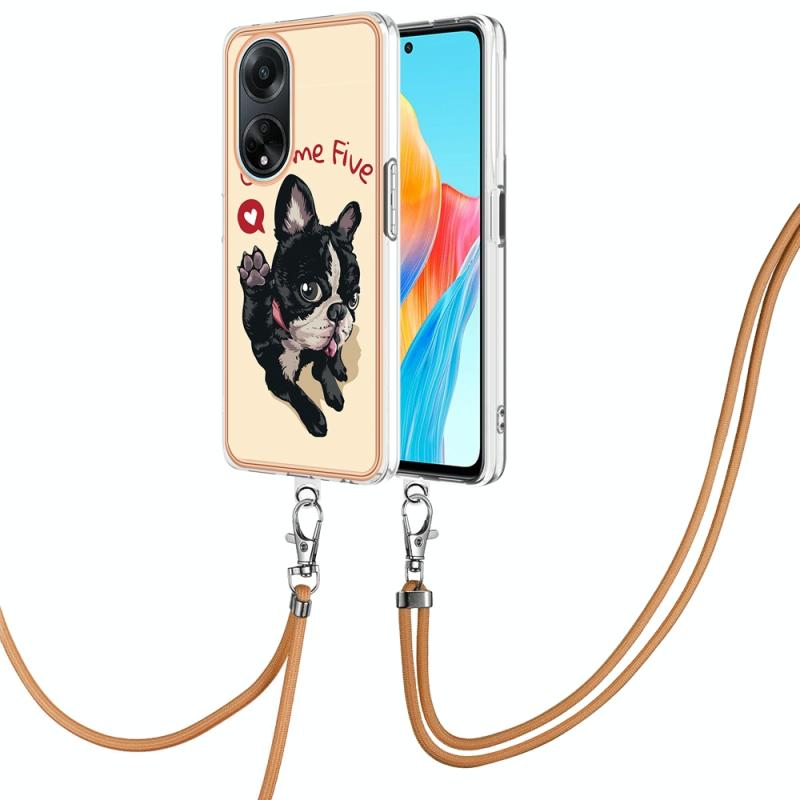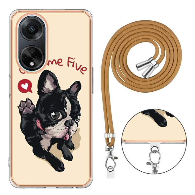 For OPPO A98 Electroplating Dual-side IMD Phone Case with Lanyard(Lucky Dog)