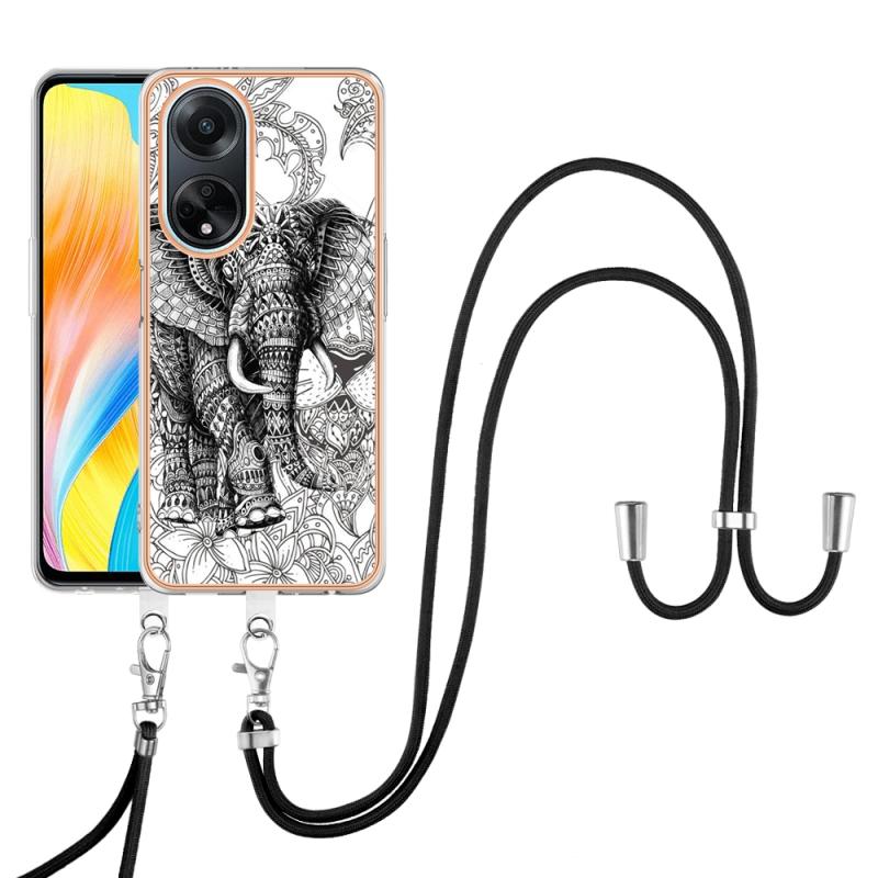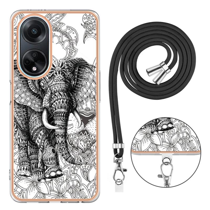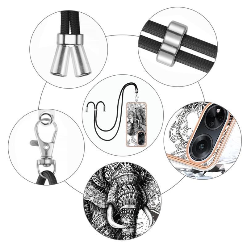 For OPPO A98 Electroplating Dual-side IMD Phone Case with Lanyard(Totem Elephant)