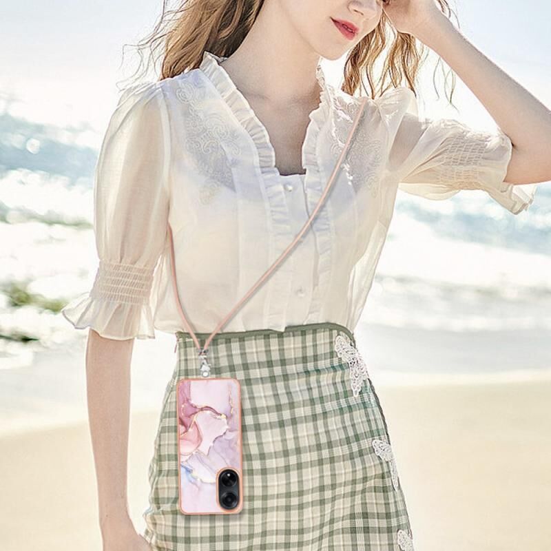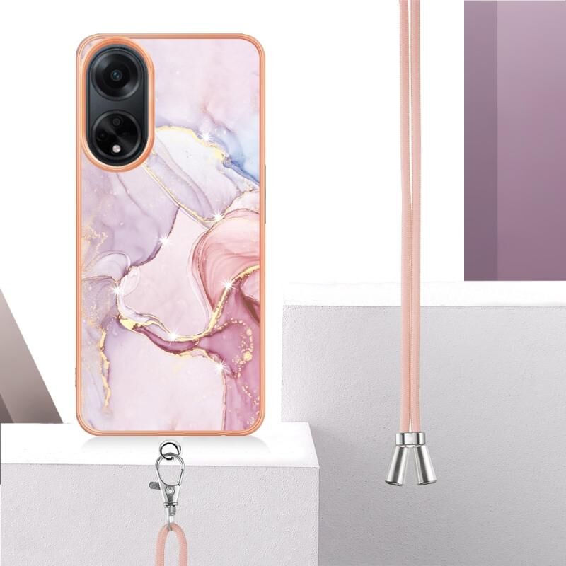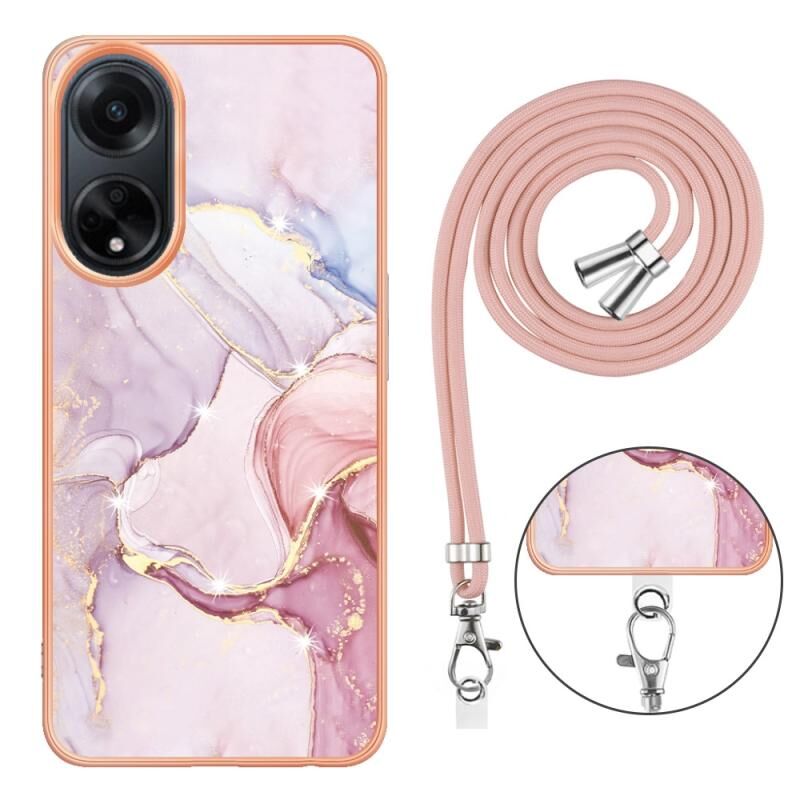 Θήκη τηλεφώνου για OPPO A98 με ηλεκτρολυτική μαρμάρινη επένδυση IMD διπλής όψης με κορδόνι (Μωβ 001)