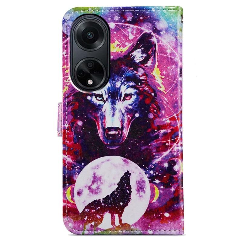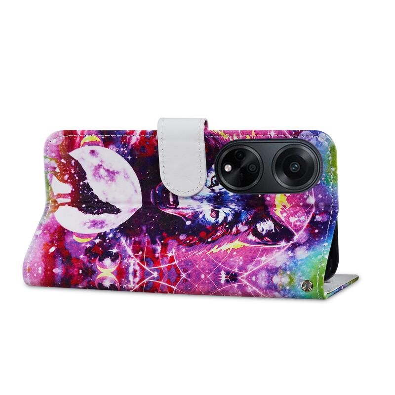 Θήκη τηλεφώνου από δέρμα με οριζόντιο άνοιγμα και ζωγραφιστό σχέδιο για OPPO A98 (Λύκος Τοτέμ)