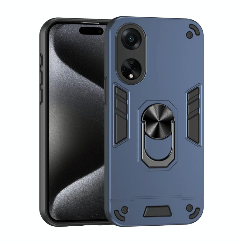 For OPPO A98 Shockproof Metal Ring Holder Phone Case(Blue)