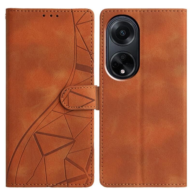 Θήκη τηλεφώνου από δέρμα με ανάγλυφα τρίγωνα για OPPO A98 (Μωβ)