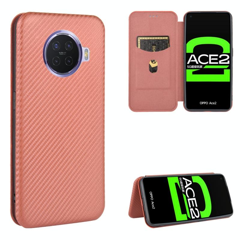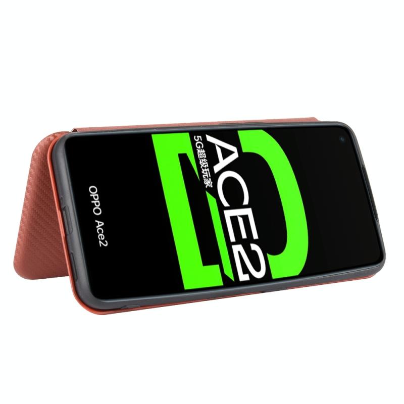 For OPPO Ace2 Carbon Fiber Texture Horizontal Flip TPU + PC + PU Leather Case with Card Slot(Brown)