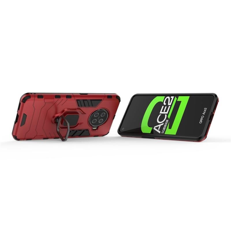 Για OPPO Ace2 PC + TPU Shockproof προστατευτική θήκη με μαγνητικό δακτύλιο κάτοχος (κόκκινο)
