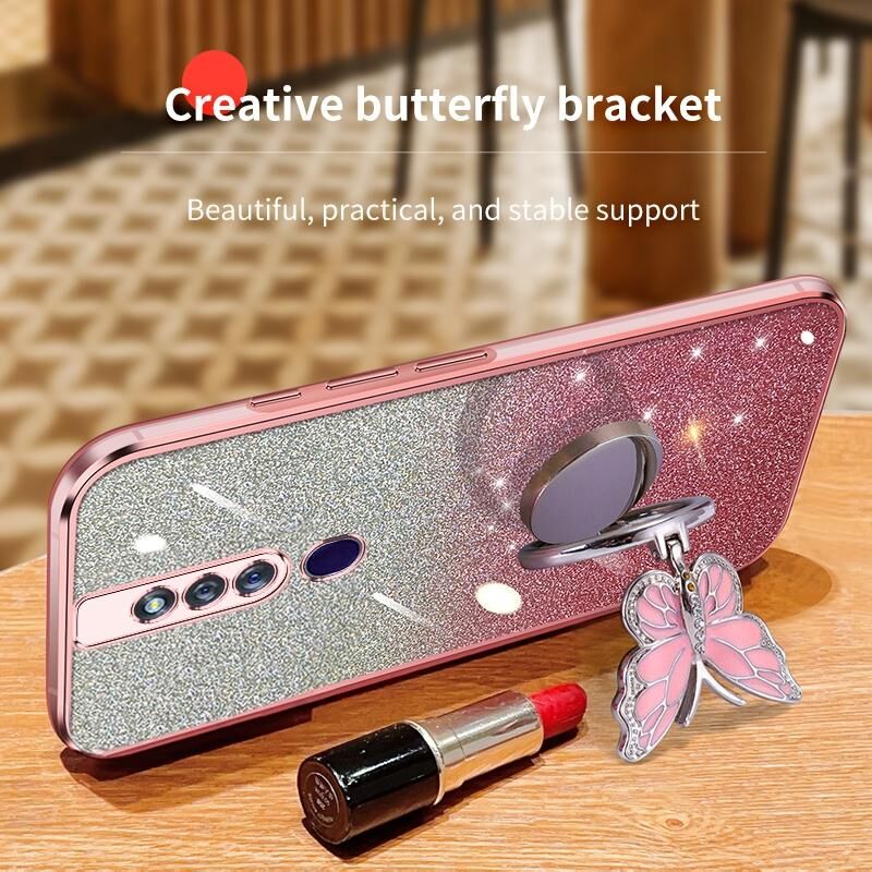 Για OPPO F11 Pro Επιμεταλλωμένο διαβάθμιση Glitter πεταλούδα κάτοχος TPU τηλέφωνο υπόθεση (ροζ)