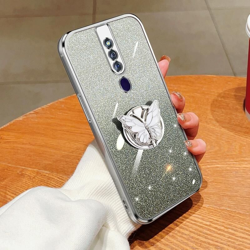 Για OPPO F11 Pro Επιμεταλλωμένο διαβάθμιση Glitter πεταλούδα κάτοχος TPU τηλέφωνο υπόθεση (ασημί)