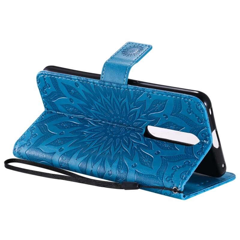 Θήκη για OPPO F11 Pro με εκτύπωση λουλουδιών, οριζόντια, από δερματίνη PU με βάση στήριξης, θήκες για κάρτες, πορτοφόλι & λουρί (Μπλε)