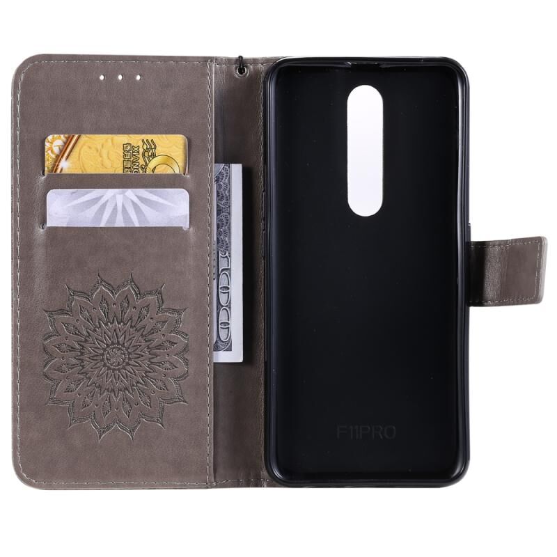 Θήκη για OPPO F11 Pro με εκτύπωση ηλιοτροπίου, οριζόντια αναδιπλούμενη από δερματίνη PU με βάση στήριξης & θήκες καρτών & πορτοφόλι & κορδόνι (Γκρι)