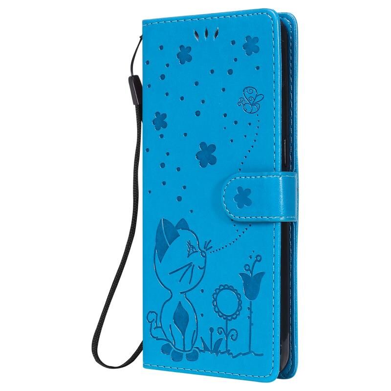 Θήκη δέρματος οριζόντιας αναδίπλωσης με ανάγλυφο σχέδιο Cat Bee, αντικραδασμική για OPPO F17 / A73 (2020) 4G, με βάση στήριξης & υποδοχές καρτών & πορτοφόλι (Κόκκινο)