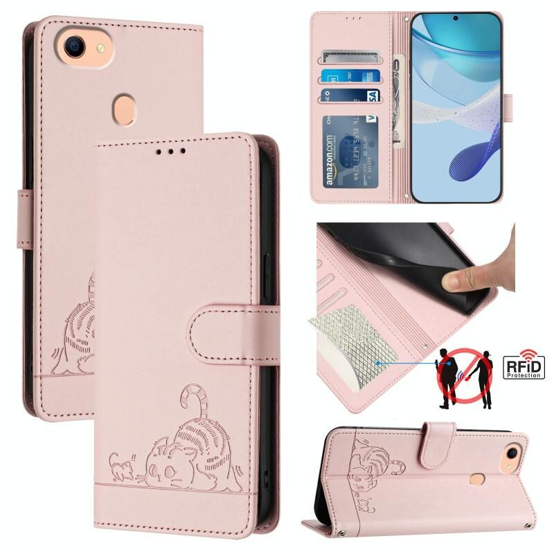 Θήκη τηλεφώνου από δέρμα με ανάγλυφο σχέδιο γάτας και γάτας για OPPO F17 / A73 2020 4G Global με λουρί (Μέντας Πράσινο)