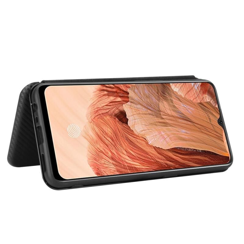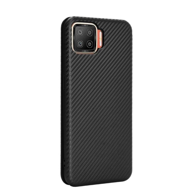 Για OPPO F17 / A73 (2020) Θήκη οριζόντιας αναδίπλωσης από TPU + PC + Δέρμα PU με υφή ανθρακονήματος και θήκη για κάρτες (Μαύρο)