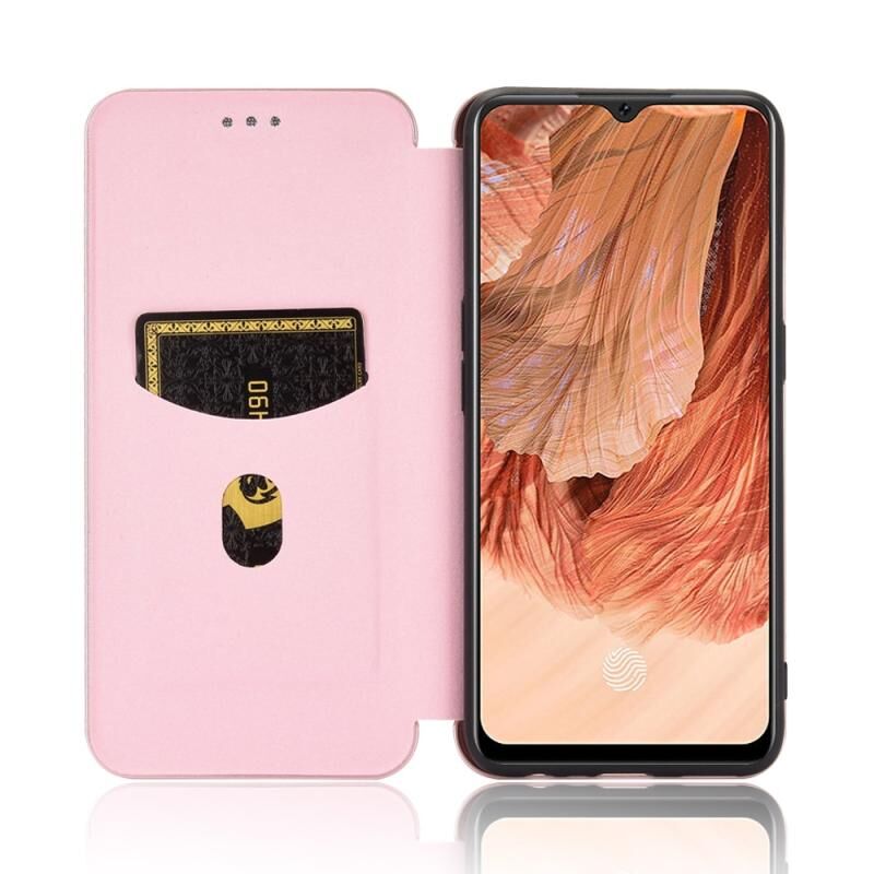 Για OPPO F17 / A73 (2020) Θήκη οριζόντιας αναδίπλωσης από TPU + PC + Δέρμα PU με υφή ανθρακονήματος και θήκη για κάρτες (ρόζ)