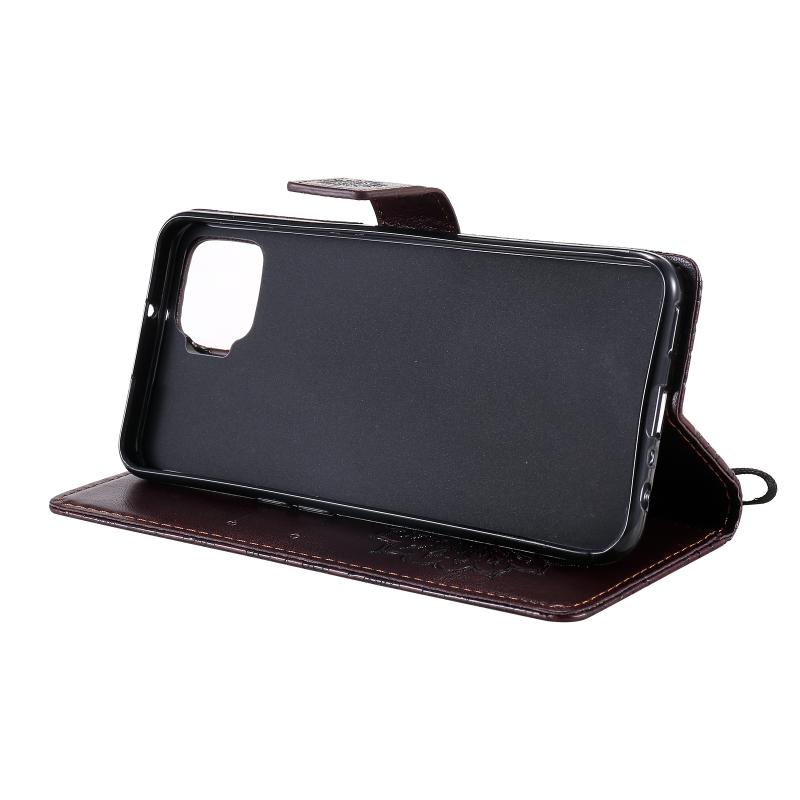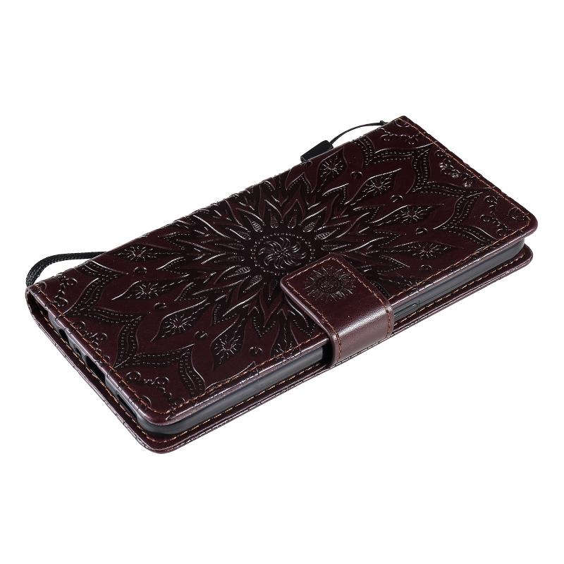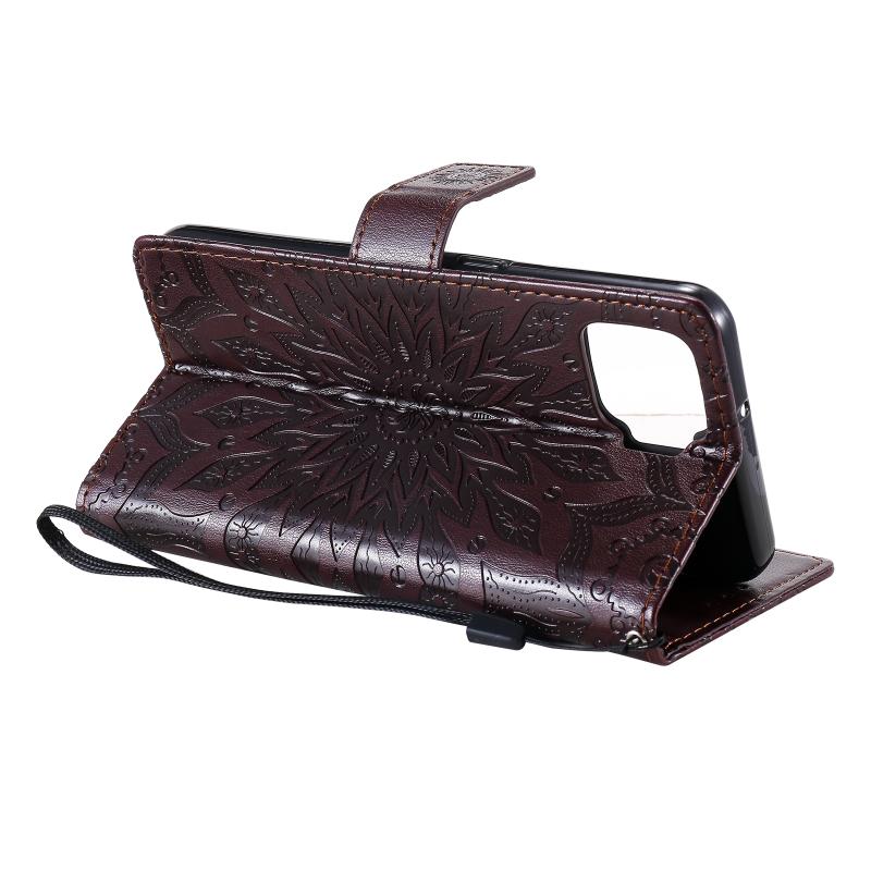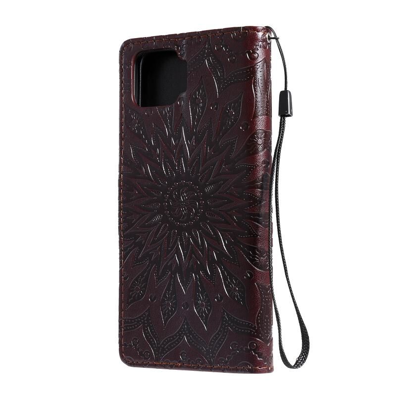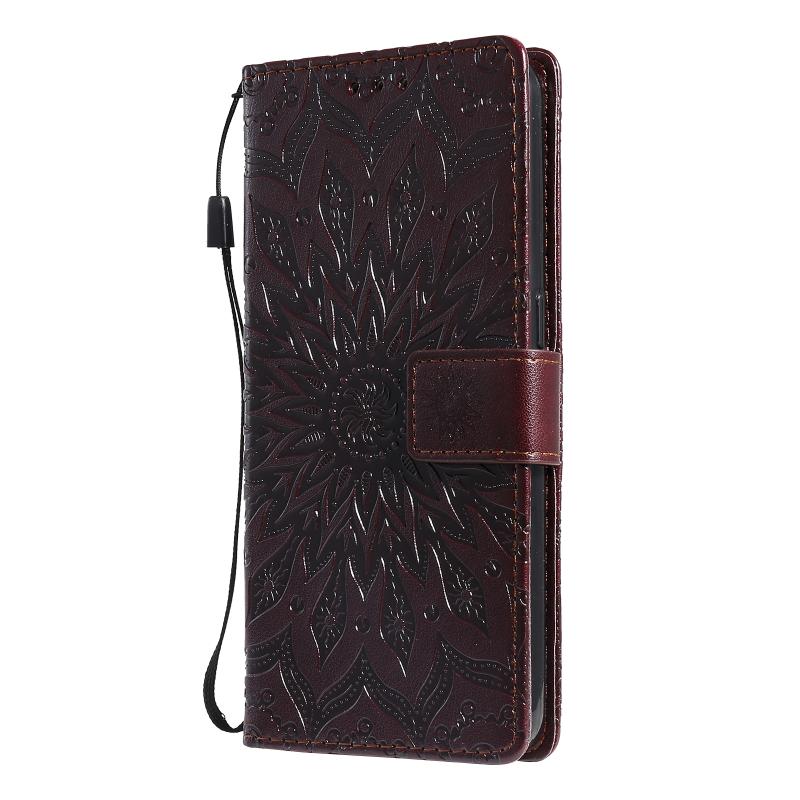 Θήκη δέρματος οριζόντιας αναδίπλωσης με ανάγλυφο σχέδιο ήλιου για OPPO F17 / A73 με υποδοχή κάρτας & βάση & πορτοφόλι & κορδόνι (Καφέ)