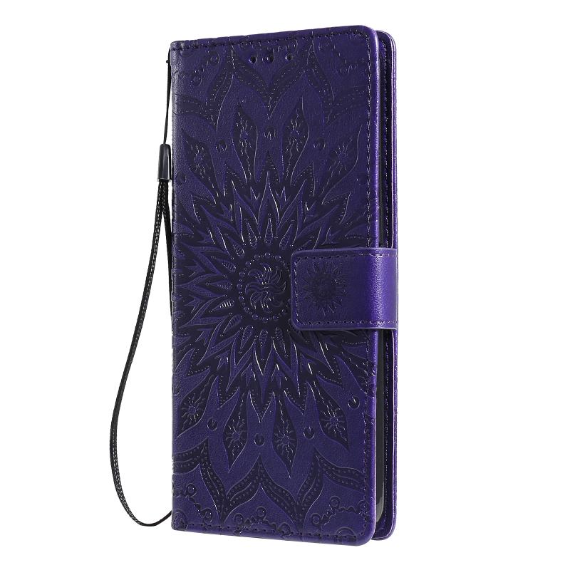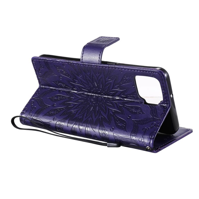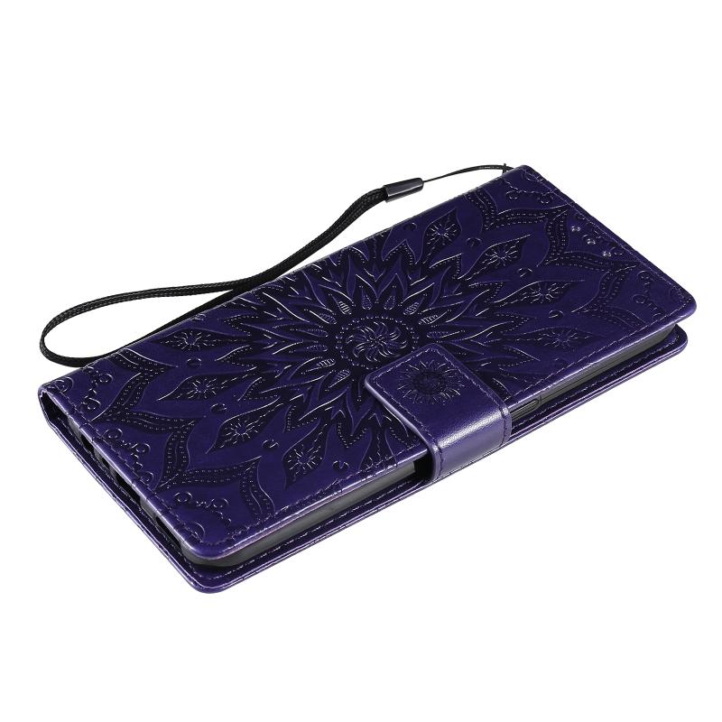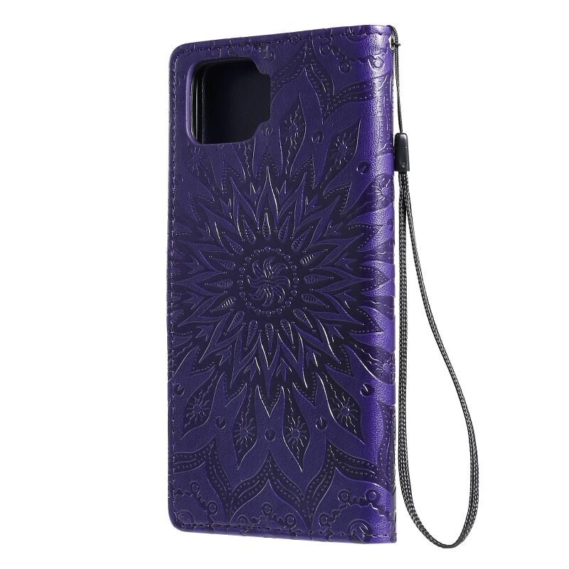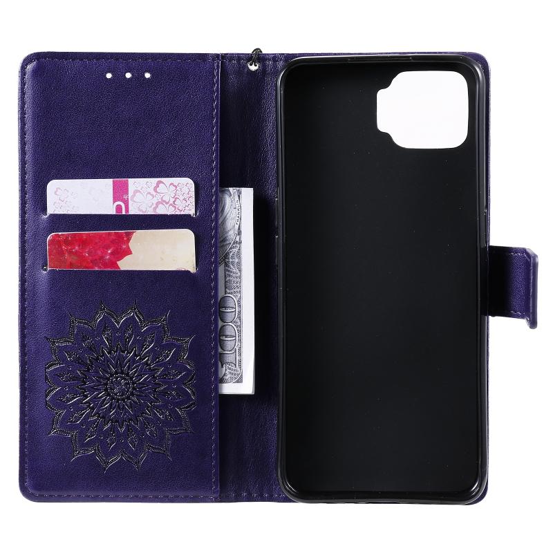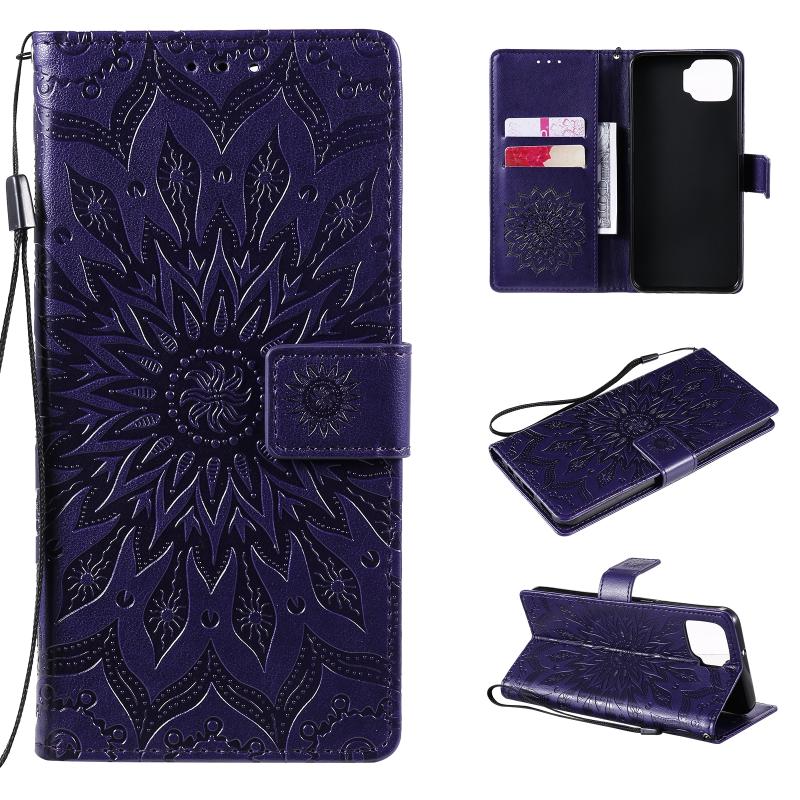 Θήκη δέρματος οριζόντιας αναδίπλωσης με ανάγλυφο σχέδιο ήλιου για OPPO F17 / A73 με υποδοχή κάρτας & βάση & πορτοφόλι & κορδόνι (Καφέ)