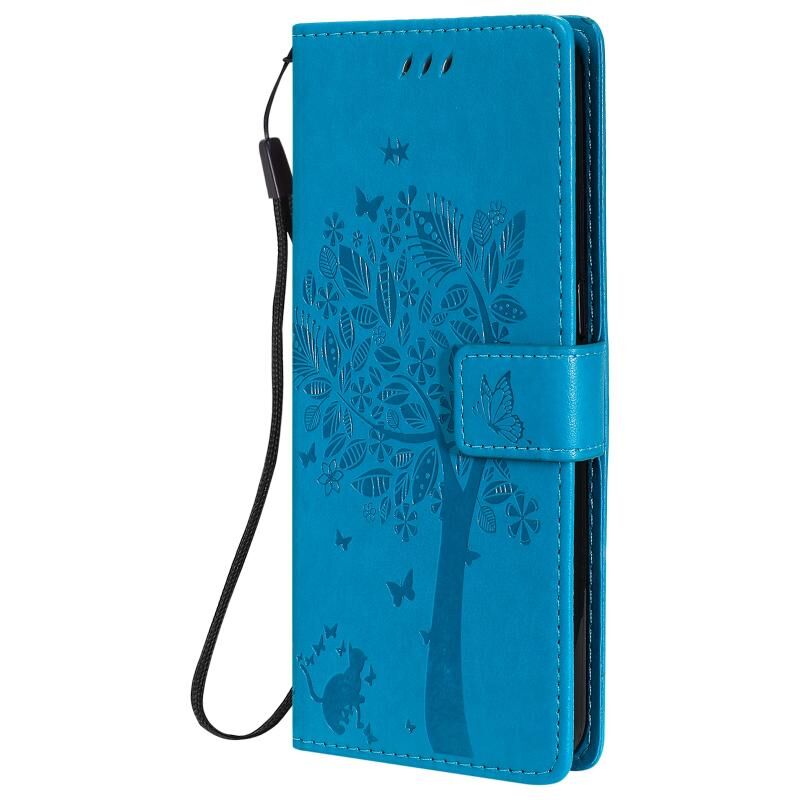 Θήκη για OPPO F17 / A73 με σχέδιο Δέντρου & Γάτας, εκτυπωμένη με θερμοτύπηση, οριζόντια αναδιπλούμενη από δερματίνη PU με βάση στήριξης & θήκες καρτών & πορτοφόλι & κορδόνι (Πράσινο)