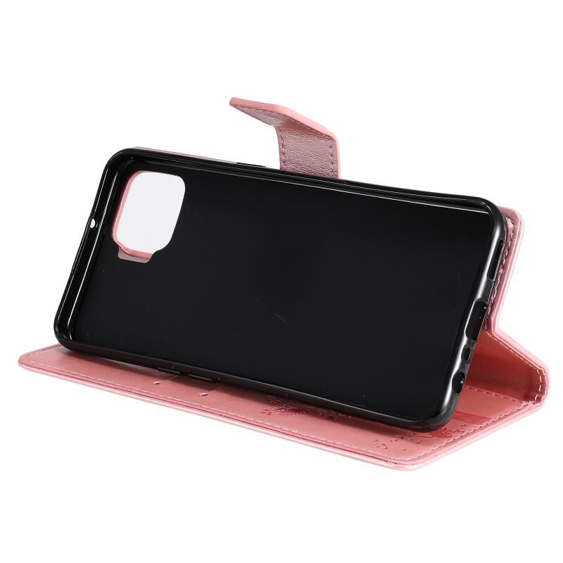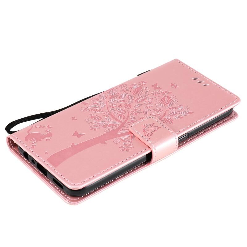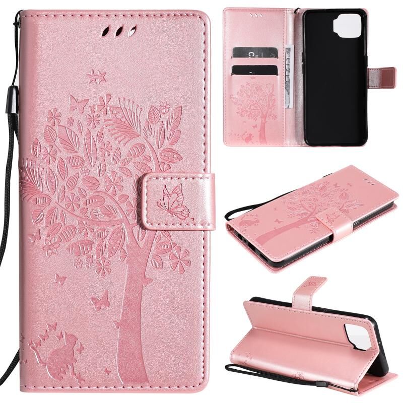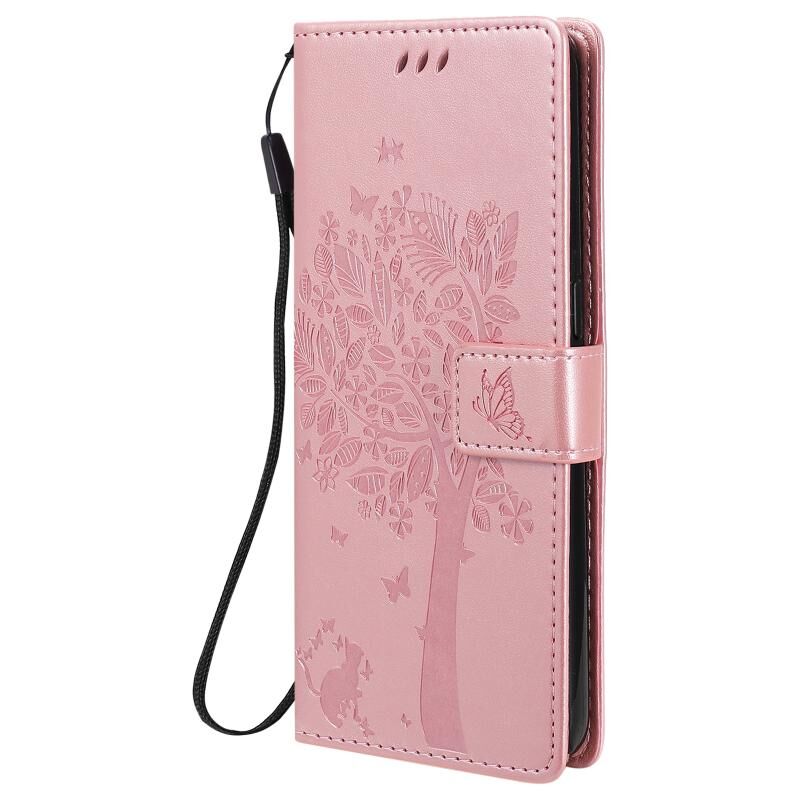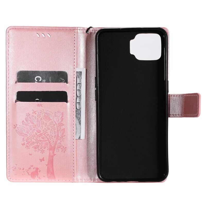 Θήκη για OPPO F17 / A73 με σχέδιο Δέντρου & Γάτας, εκτυπωμένη με θερμοτύπηση, οριζόντια αναδιπλούμενη από δερματίνη PU με βάση στήριξης & θήκες καρτών & πορτοφόλι & κορδόνι (Πράσινο)