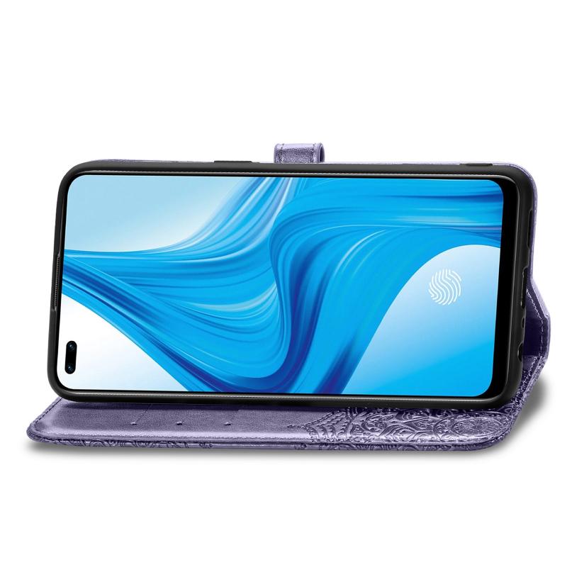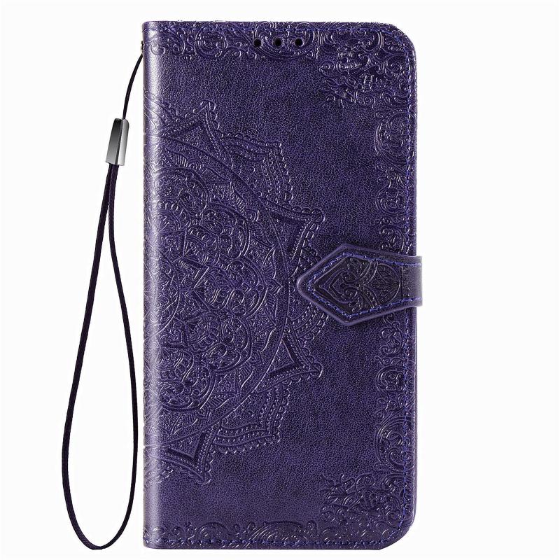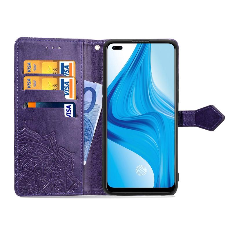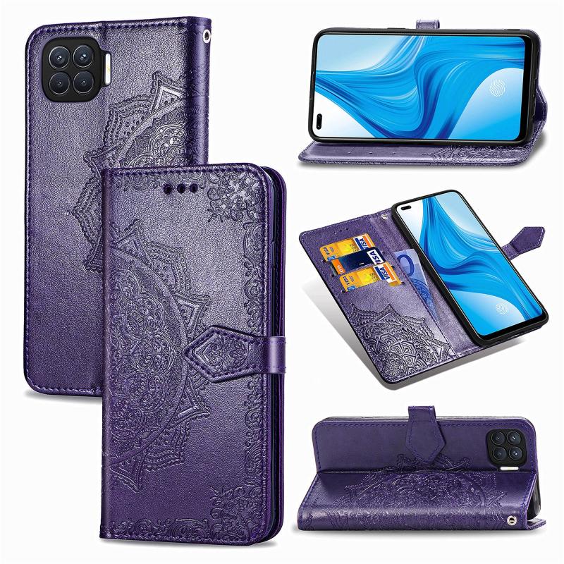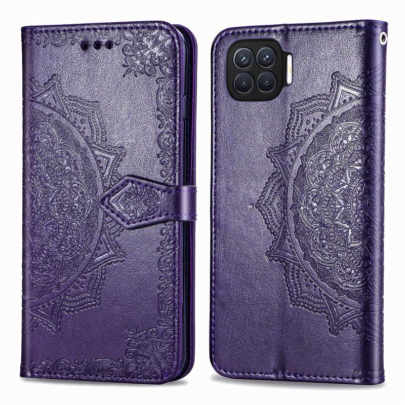 For OPPO F17 Mandala Flower Embossed Horizontal Flip Leather Case with Bracket / Card Slot / Wallet / Lanyard(Purple)