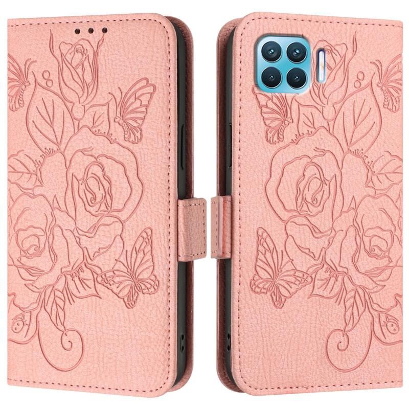 Για OPPO F17 Pro / A93 2020 4G Παγκόσμια ανάγλυφο Rose RFID Anti-theft Δερμάτινη θήκη τηλεφώνου (ροζ)