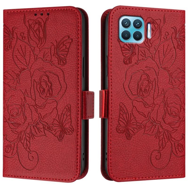 Για OPPO F17 Pro / A93 2020 4G Παγκόσμια ανάγλυφο Rose RFID Anti-theft Δερμάτινη θήκη τηλεφώνου (κόκκινο)