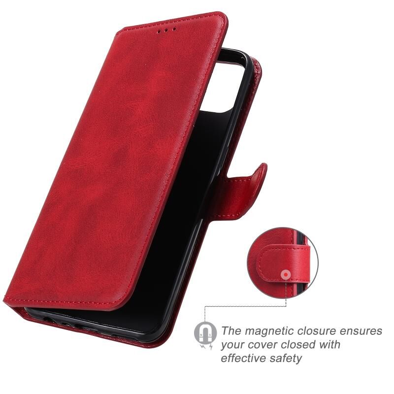Θήκη δέρματος οριζόντιας αναδίπλωσης για OPPO F17 Pro / A93, με υφή μοσχαρίσιου δέρματος PU + TPU, με βάση & υποδοχές καρτών & πορτοφόλι (Κόκκινο)