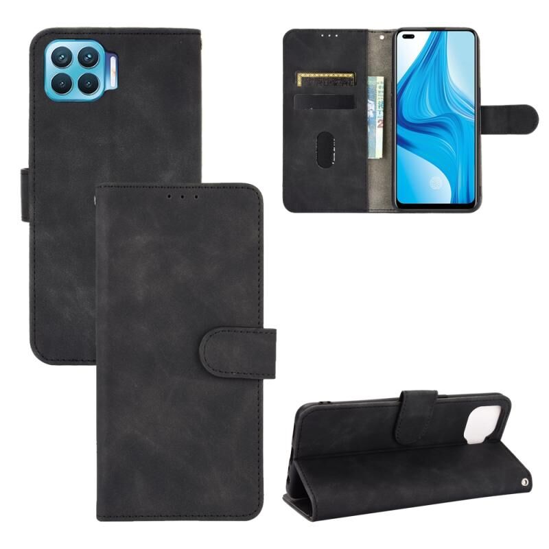 Θήκη για OPPO F17 Pro / A93 / Reno4 Lite, μονόχρωμη με αίσθηση δέρματος, μαγνητικό κούμπωμα, οριζόντια αναδιπλούμενη, με υφή μοσχαρίσιου δέρματος, από δερματίνη PU, με βάση στήριξης & θήκες για κάρτες & πορτοφόλι (Καφέ)