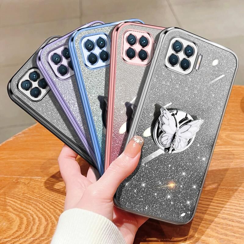 Για OPPO F17 Pro Επιμεταλλωμένο διαβάθμιση Glitter πεταλούδα κάτοχος TPU τηλέφωνο υπόθεση (ροζ)