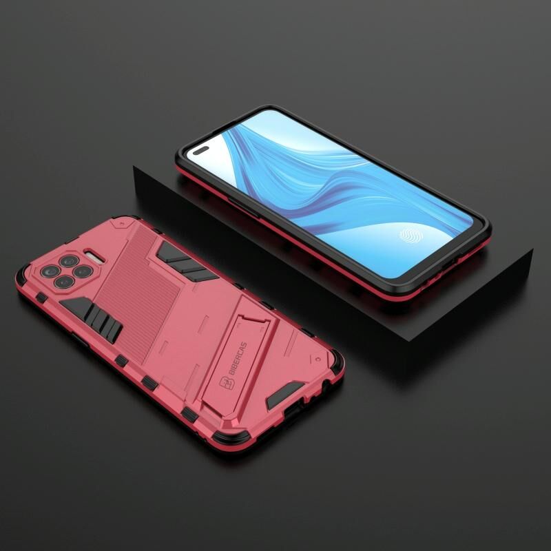 For OPPO F17 Pro Punk Armor 2 in 1 PC + TPU Shockproof Case with Invisible Holder(Light Red)