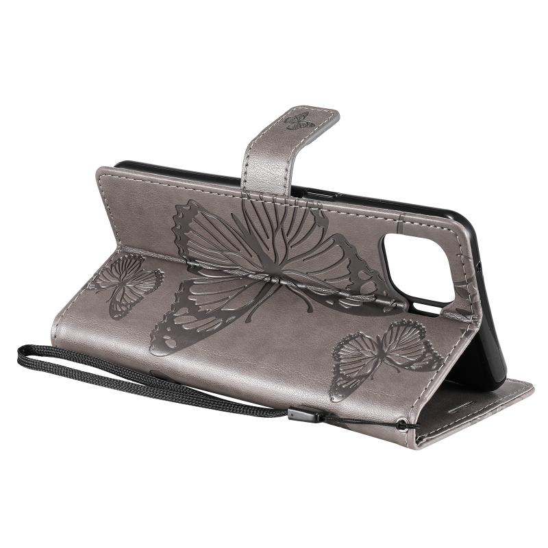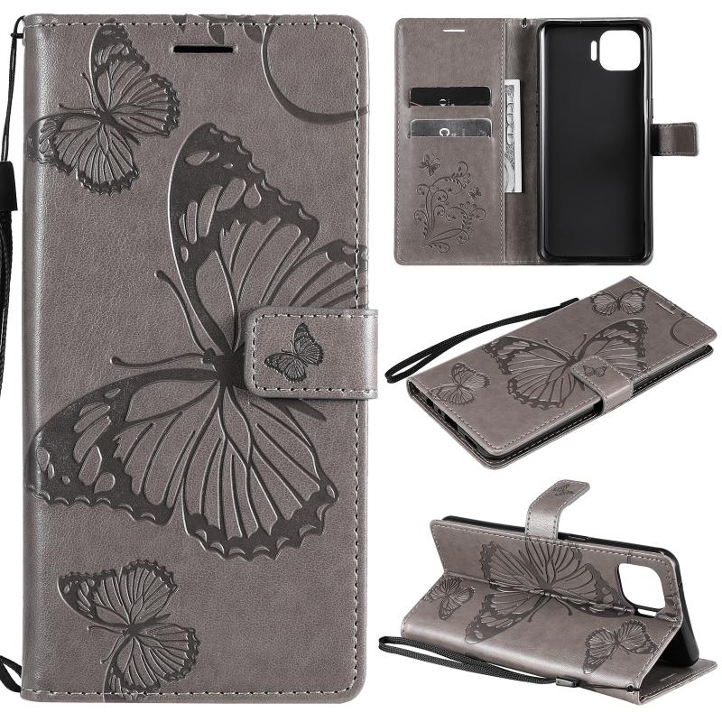 Θήκη δέρματος οριζόντιας αναδίπλωσης με ανάγλυφο σχέδιο 3D πεταλούδων για OPPO F17 Pro / Reno4 Lite με βάση στήριξης & υποδοχή κάρτας & πορτοφόλι (Χρυσό ροζ)
