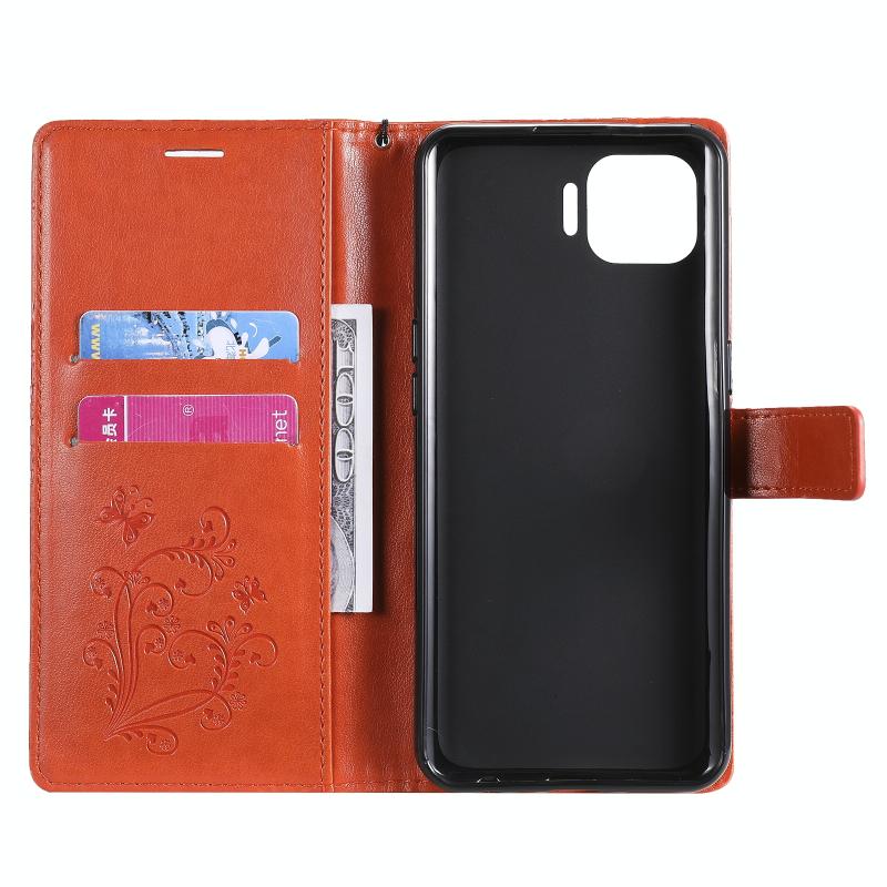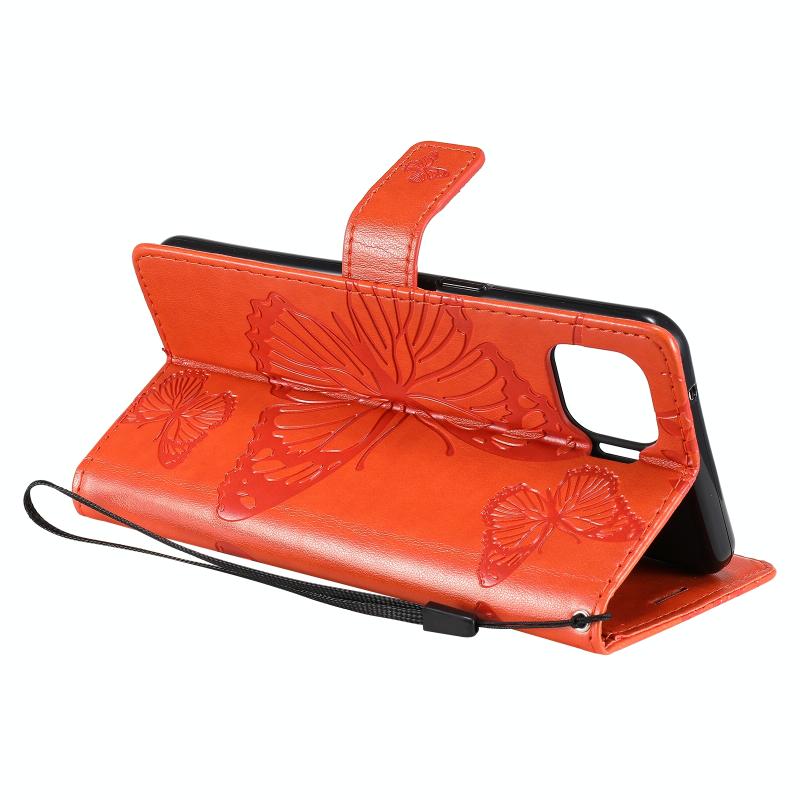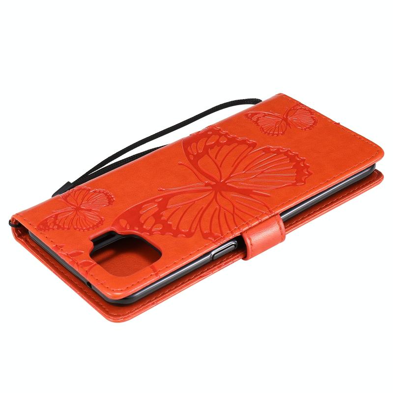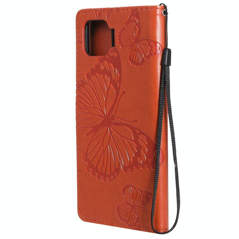 Θήκη δέρματος οριζόντιας αναδίπλωσης με ανάγλυφο σχέδιο 3D πεταλούδων για OPPO F17 Pro / Reno4 Lite με βάση στήριξης & υποδοχή κάρτας & πορτοφόλι (Χρυσό ροζ)
