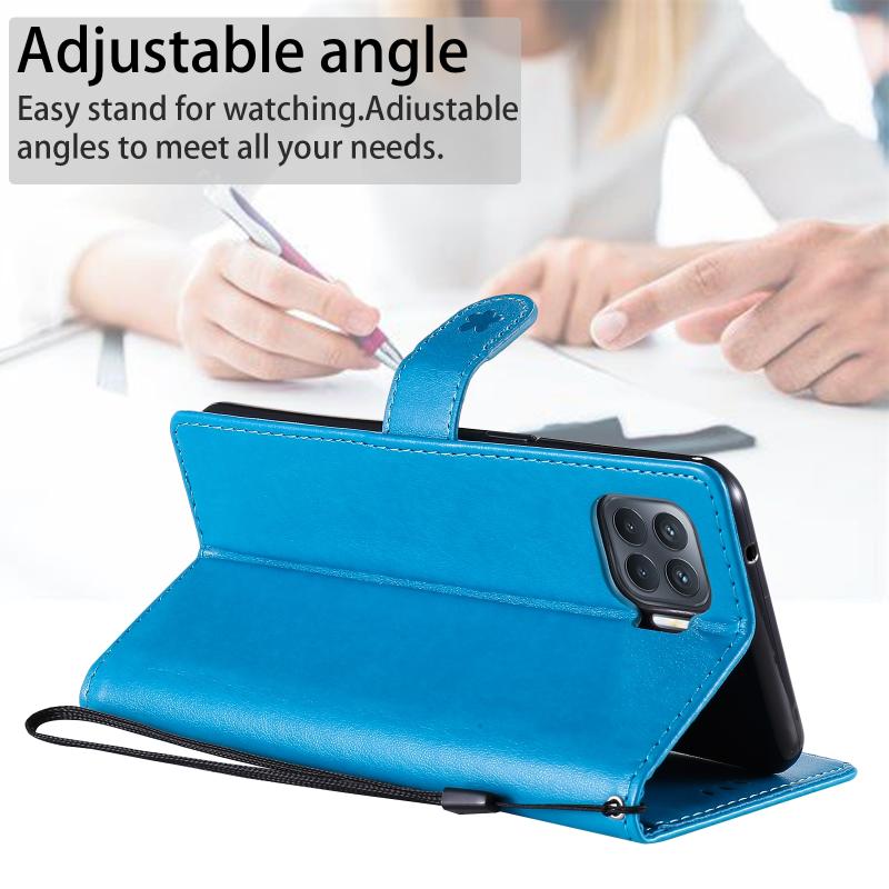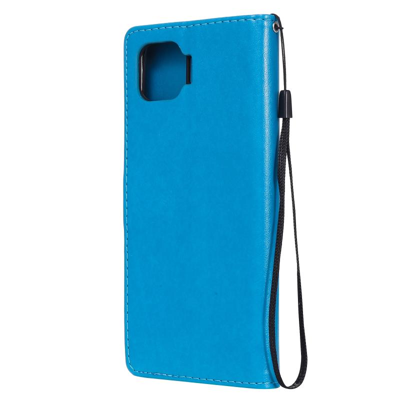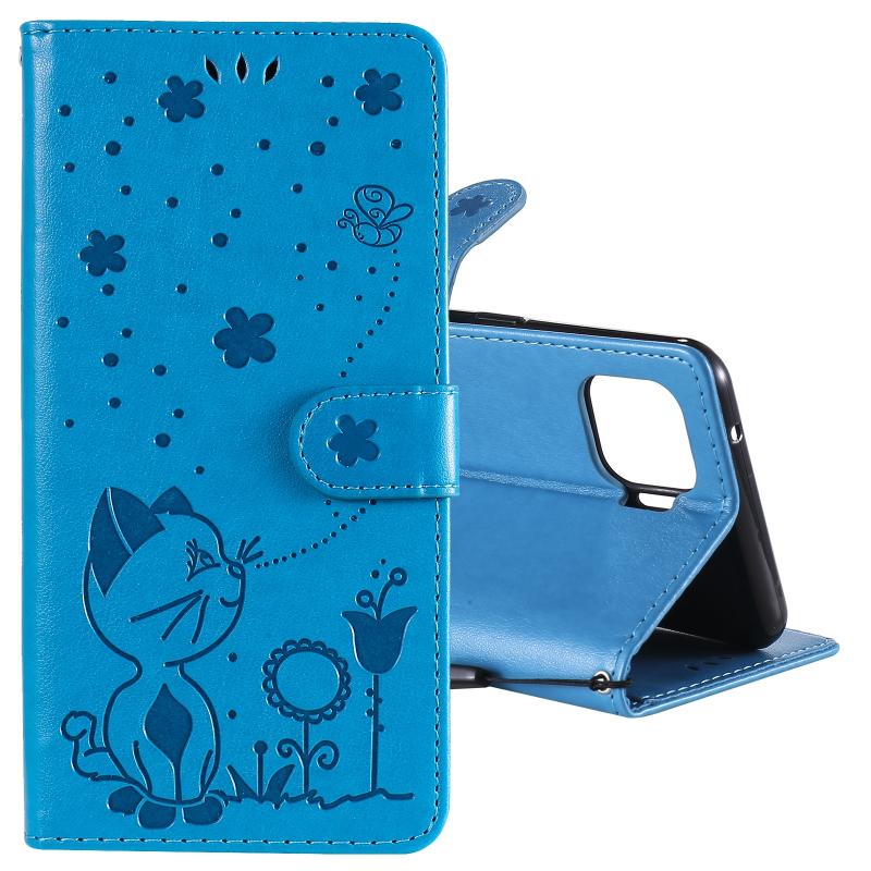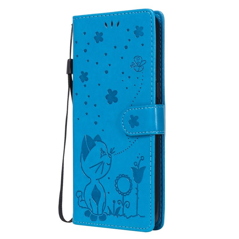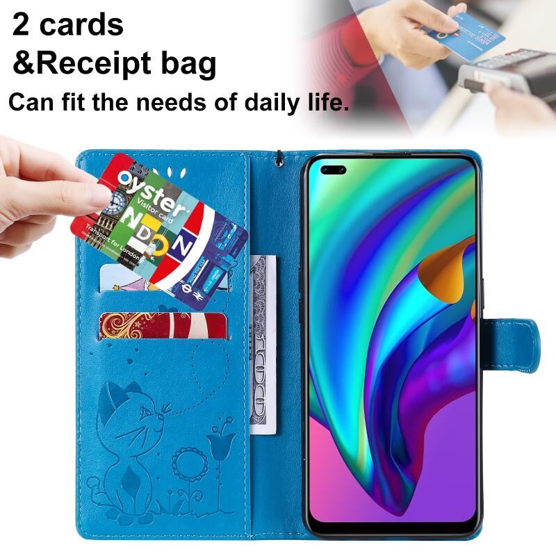 Θήκη δέρματος οριζόντιας αναδίπλωσης με ανάγλυφο σχέδιο Cat Bee, αντικραδασμική για OPPO F17 Pro / Reno4 Lite με βάση στήριξης & υποδοχές καρτών & πορτοφόλι (Μπλε)