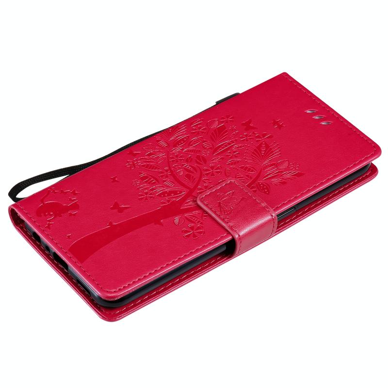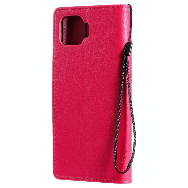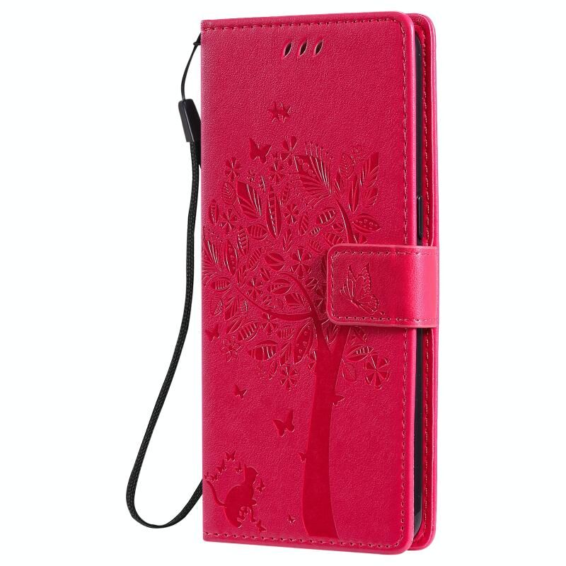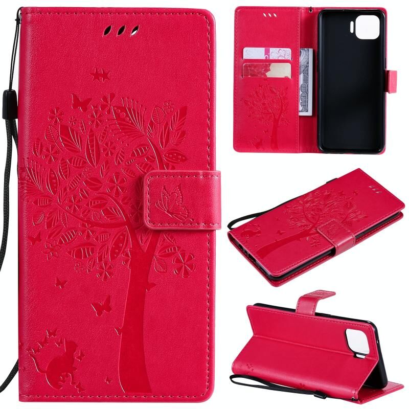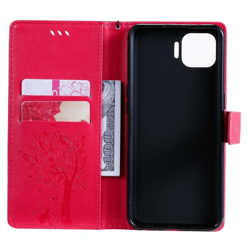 Θήκη για OPPO F17 Pro / Reno4 Lite με σχέδιο Δέντρου & Γάτας, εκτυπωμένη με θερμοτύπωση, οριζόντια αναδιπλούμενη από δερματίνη PU με βάση στήριξης & θήκες καρτών & πορτοφόλι & κορδόνι (Χρυσό)