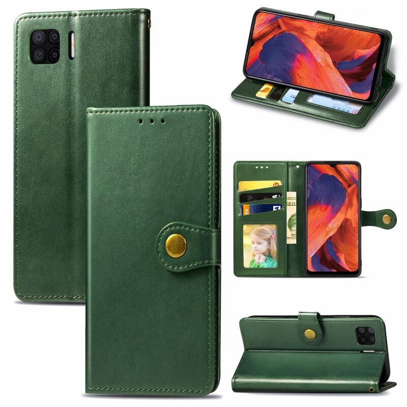 Για OPPO F17 Αμιγές χρώμα δερμάτινη θήκη τηλεφώνου πόρπη με κορδόνι & πλαίσιο φωτογραφιών & υποδοχή κάρτας & πορτοφόλι & λειτουργία Stand (πράσινο)