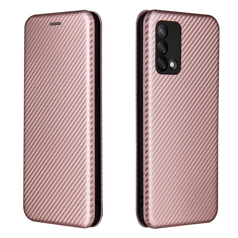 Για OPPO F19 / A74 4G Carbon Fiber υφή οριζόντια Flip TPU + PC + PU δέρμα υπόθεση με υποδοχή κάρτας (ρόζ)