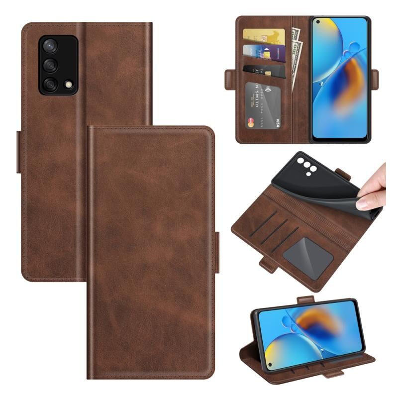 Για OPPO F19 / A74 4G διπλής όψης μαγνητική πόρπη οριζόντια Flip δερμάτινη θήκη με υποδοχή & υποδοχές καρτών & πορτοφόλι (Καφέ)