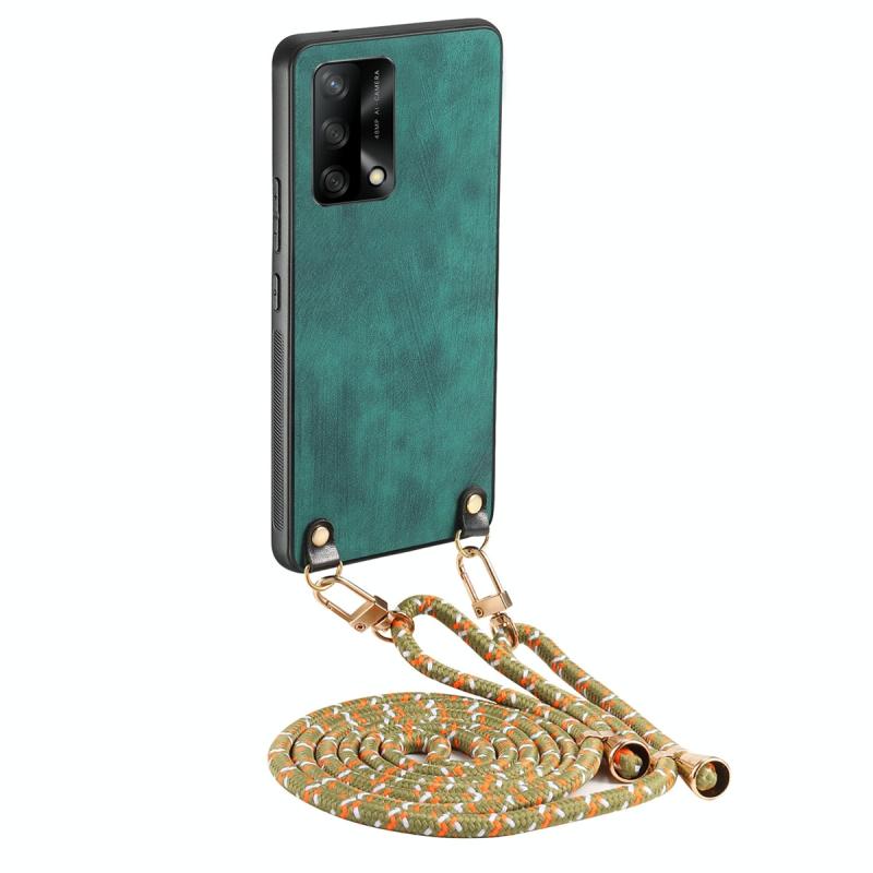 Θήκη κινητού τηλεφώνου OPPO F19 / A74 4G με δερμάτινη πλάτη PC σε vintage στυλ με λουρί crossbody (πράσινο)