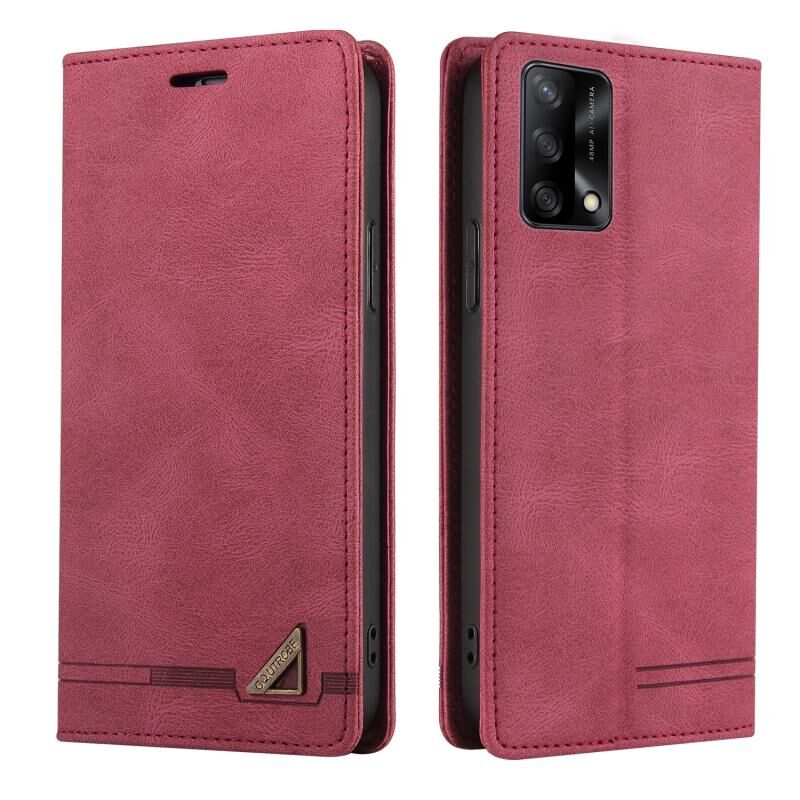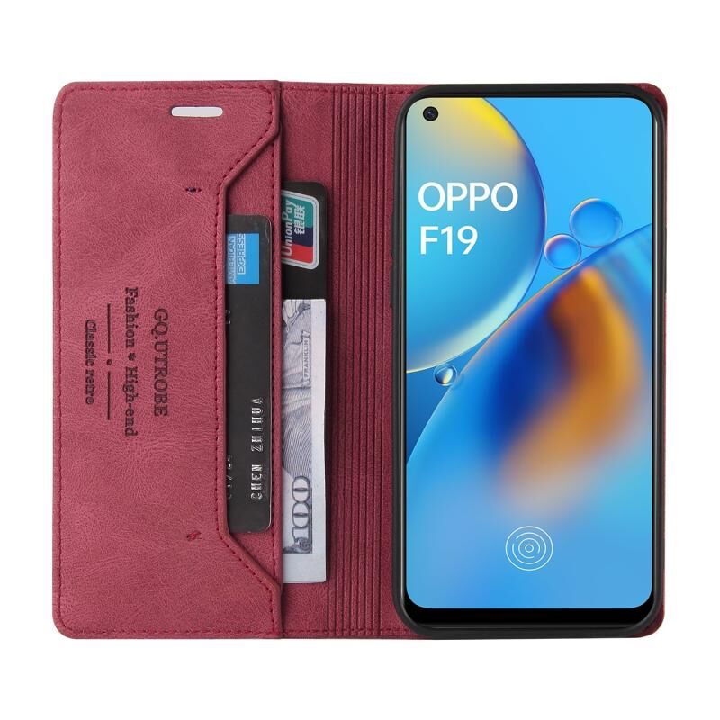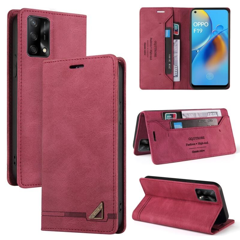 Για OPPO F19 / A74 Skin Feel Anti-theft Brush Οριζόντια Flip δερμάτινη θήκη με θήκη & υποδοχές καρτών & πορτοφόλι (κόκκινο κρασί)
