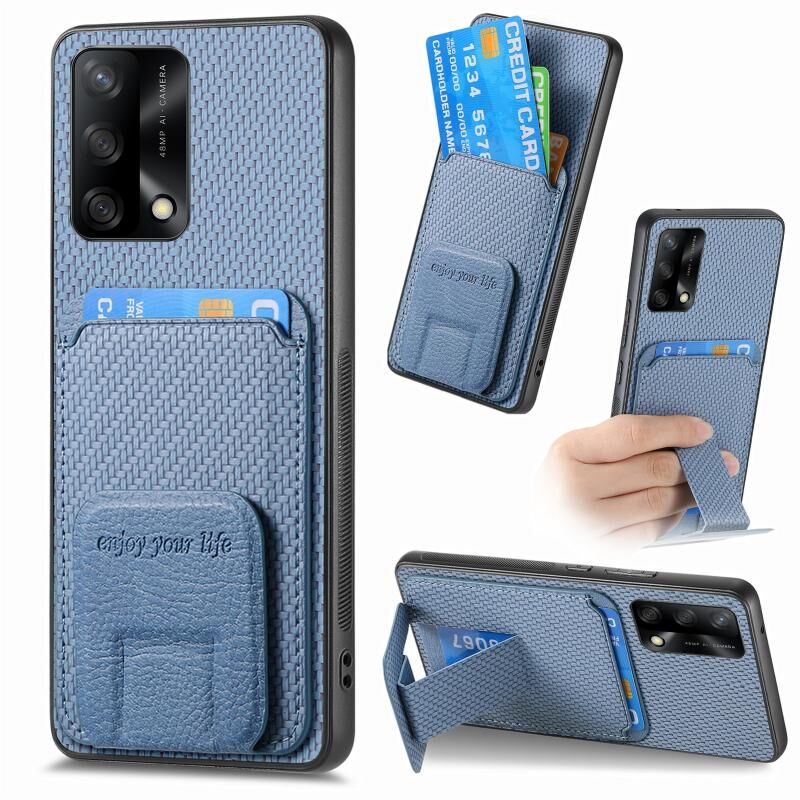 Θήκη για OPPO F19 από ανθρακόνημα με κάρτες & βάση στήριξης (Μπλε)