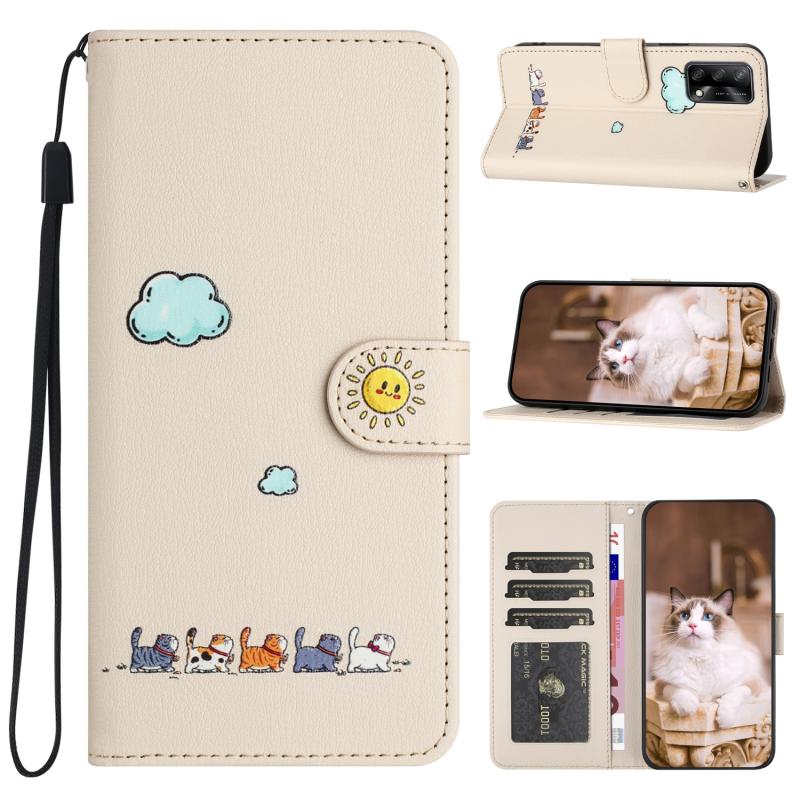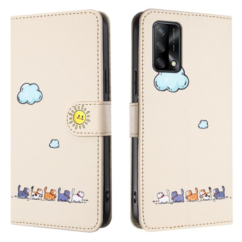 For OPPO F19 / F19s Cartoon Cats Leather Phone Case(Beige White)