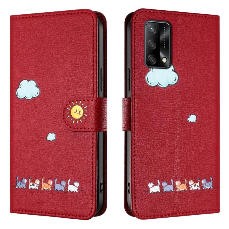 Θήκη τηλεφώνου από δέρμα με σχέδια καρτούν γάτας για OPPO F19 / F19s (Κόκκινο)