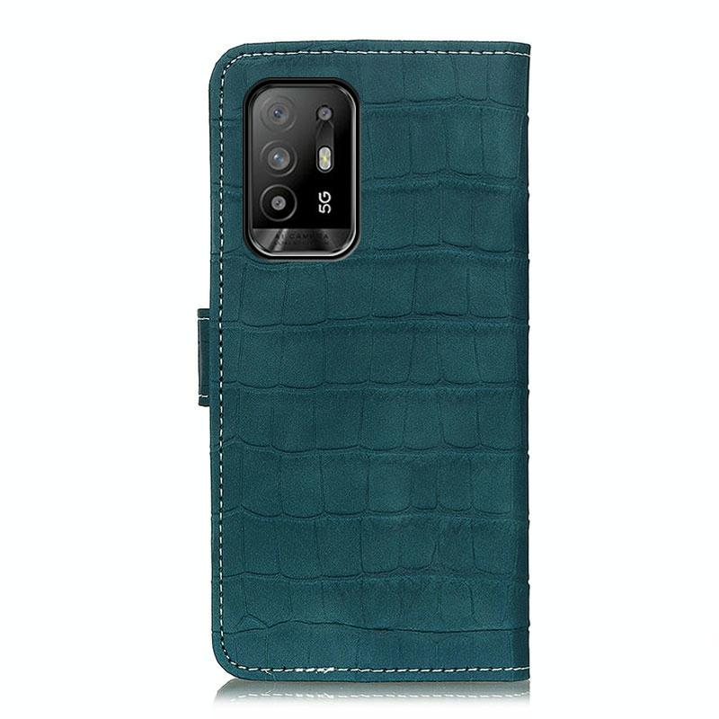 Θήκη δέρματος οριζόντιας αναδίπλωσης με υφή κροκόδειλου για OPPO F19 Pro+ 5G/ Reno5 Z / Reno6 Z με βάση στήριξης & υποδοχές καρτών & κορνίζα φωτογραφιών & πορτοφόλι (Σκούρο πράσινο)