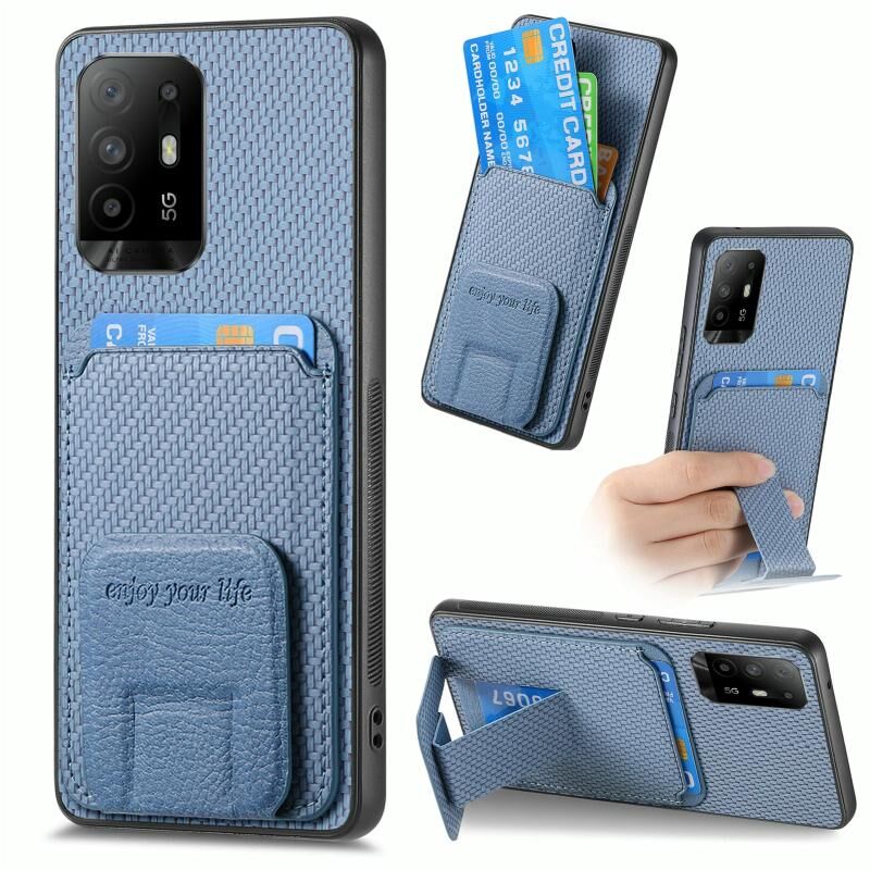 Θήκη για OPPO F19 Pro+ από ανθρακονήματα με κάρτες & βάση στήριξης (Μπλε)