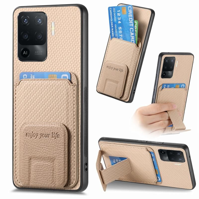 Θήκη για OPPO F19 Pro από ανθρακονήματα με κάρτες & βάση στήριξης (Χακί)