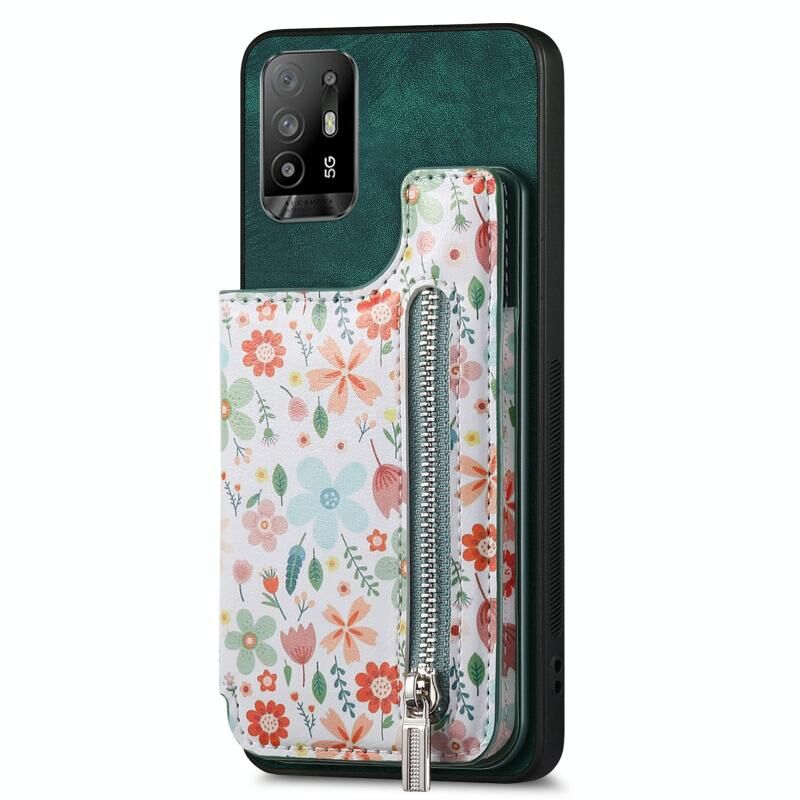 Για OPPO F19 Pro + Ρετρό ζωγραφισμένο φερμουάρ πορτοφόλι πίσω τηλέφωνο υπόθεση (πράσινο)