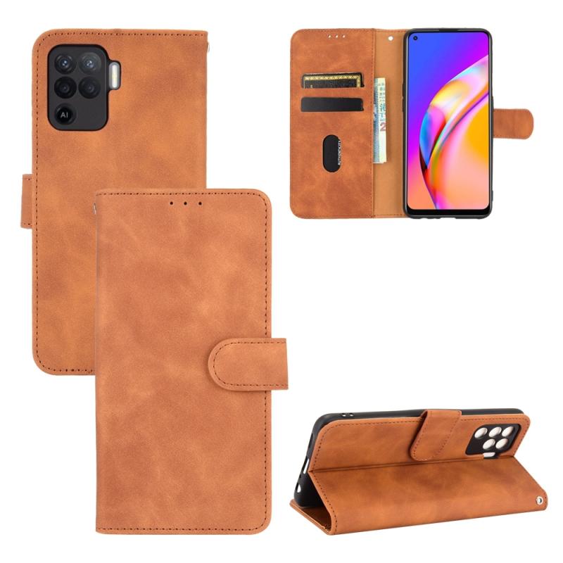 Θήκη για Oppo F19 Pro με αίσθηση δέρματος, μαγνητικό κούμπωμα, οριζόντια αναδίπλωση, υφή μοσχαριού, από δέρμα PU με βάση για κάρτες & πορτοφόλι (Καφέ)