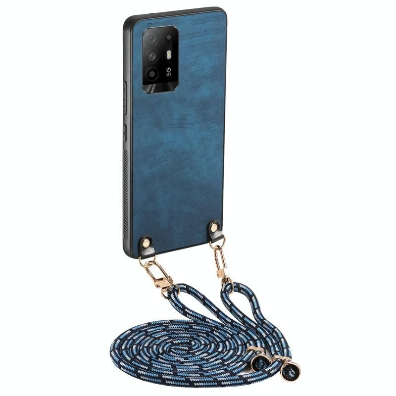 Θήκη κινητού τηλεφώνου OPPO F19 Pro από δέρμα vintage και PC με λουρί χιαστί (Καφέ)
