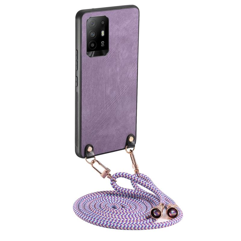 Θήκη κινητού τηλεφώνου OPPO F19 Pro από δέρμα vintage και PC με λουρί χιαστί (Καφέ)