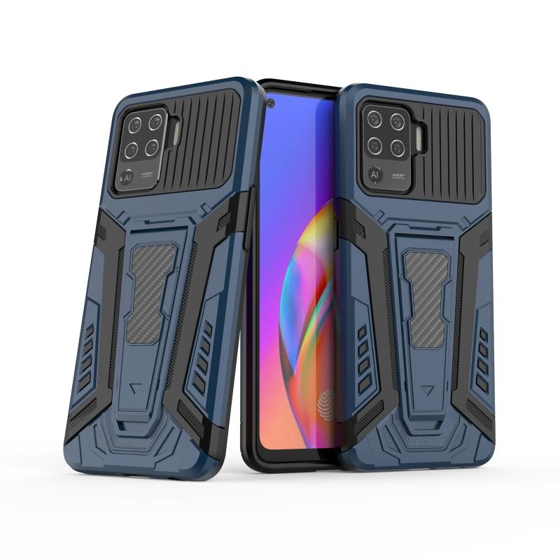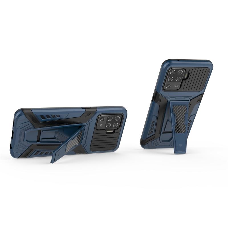 For OPPO F19 Pro War Chariot Series Armor All-inclusive Shockproof PC + TPU Protective Case with Invisible Holder(Blue)