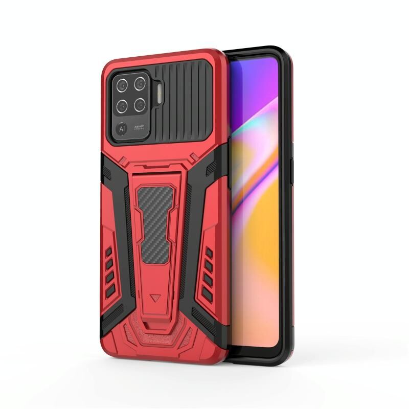 For OPPO F19 Pro War Chariot Series Armor All-inclusive Shockproof PC + TPU Protective Case with Invisible Holder(Red)
